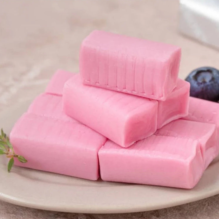 Unlike many artificial sweets, Mychew uses concentrated strawberry juice to ensure a natural, vibrant taste that isn't overly sugary.
