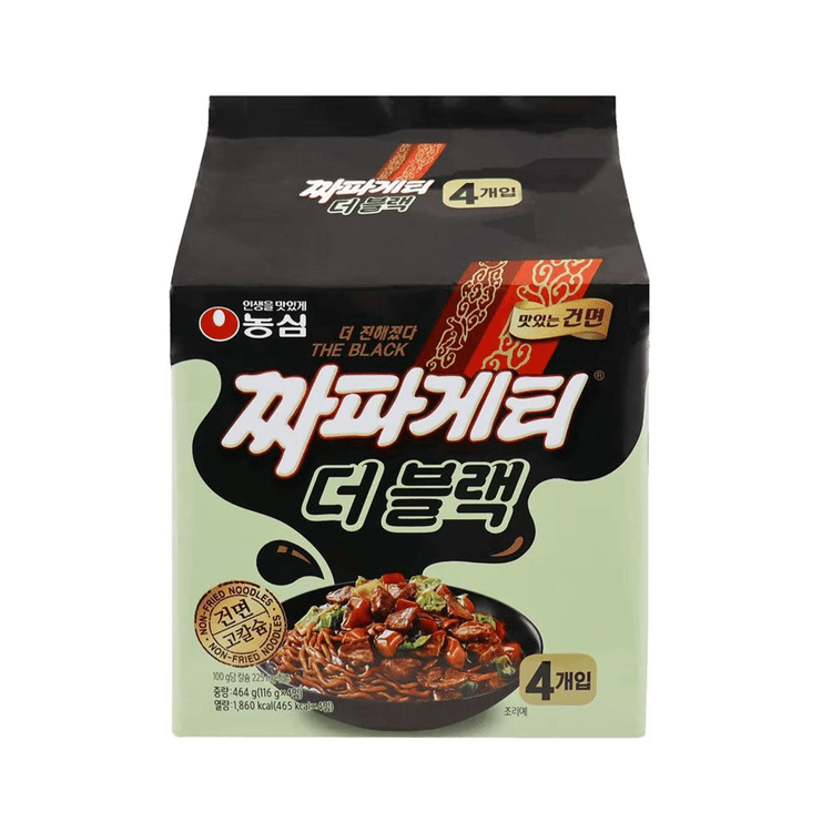 Chapagetti The Black is a "grown-up" version of Korea’s favorite Jajang-style instant noodle. To celebrate its 40th anniversary, Nongshim released this premium edition featuring non-fried air-dried noodles (Gunmyeon). It delivers a much richer, deeper roasted black bean flavor while significantly reducing the fat and calorie content compared to the original, making it a more sophisticated and lighter way to enjoy the classic Jajangmyeon taste.