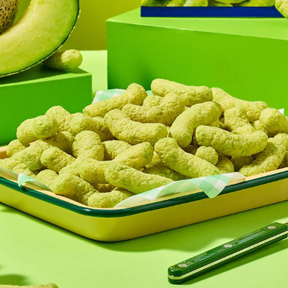 A light, airy, and crispy Korean corn puff snack featuring a sweet, creamy muskmelon (honeydew) and milk flavor, often compared to the popular Banana Kick. It has a soft, melt-in-your-mouth texture, made with Korean melon concentrate and offers a refreshing, slightly milky, and fruity taste.