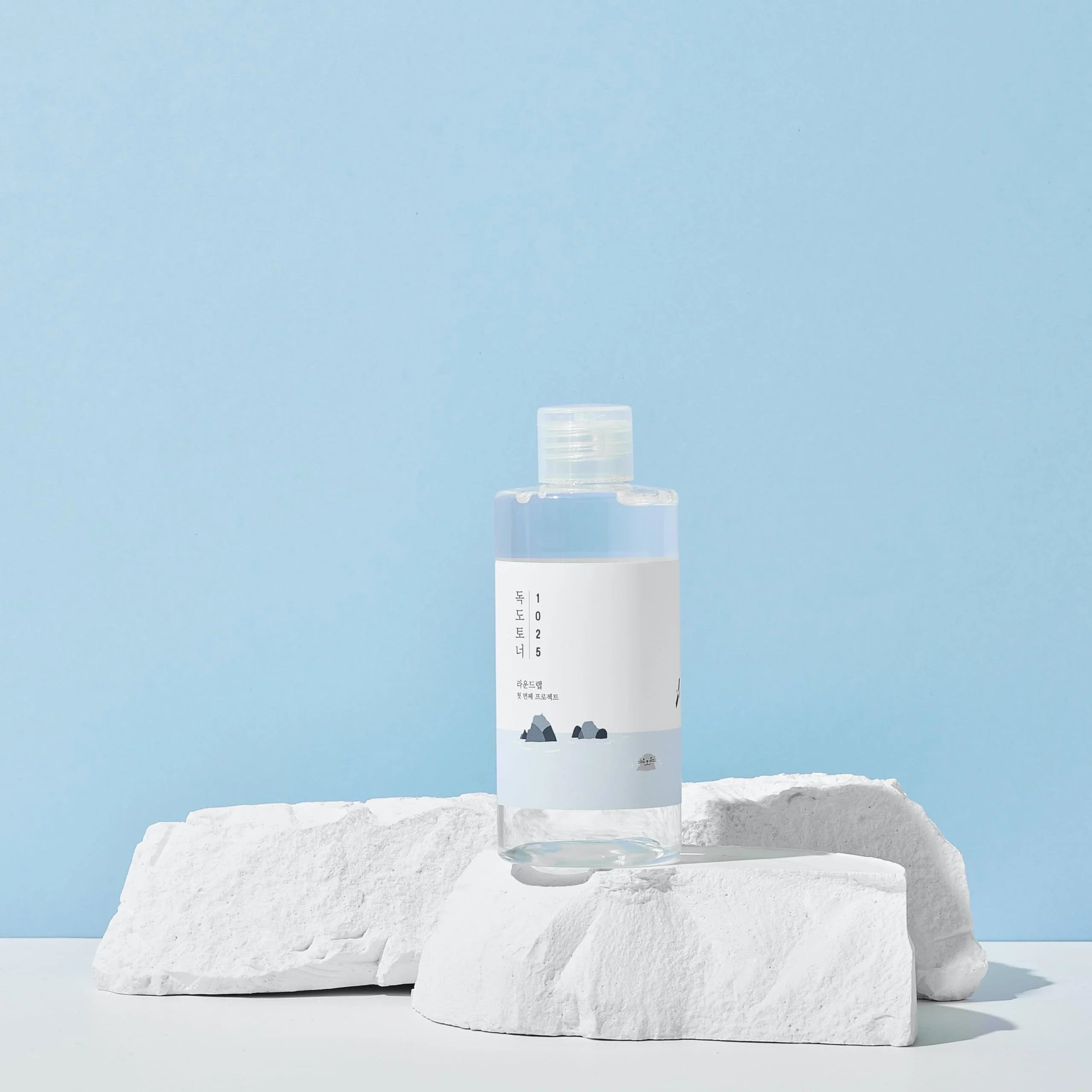 A hydrating ROUNDLAB watery toner that quickly nourishes skin while gently supporting buildup removal and soothing with calming ingredients.