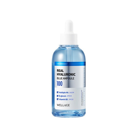 Wellage Real Hyaluronic Blue 100 Ampoule delivers intense hydration with high-purity hyaluronic acid. It deeply replenishes moisture, plumps dry skin, and strengthens the barrier for a smooth, dewy, and refreshed complexion.
